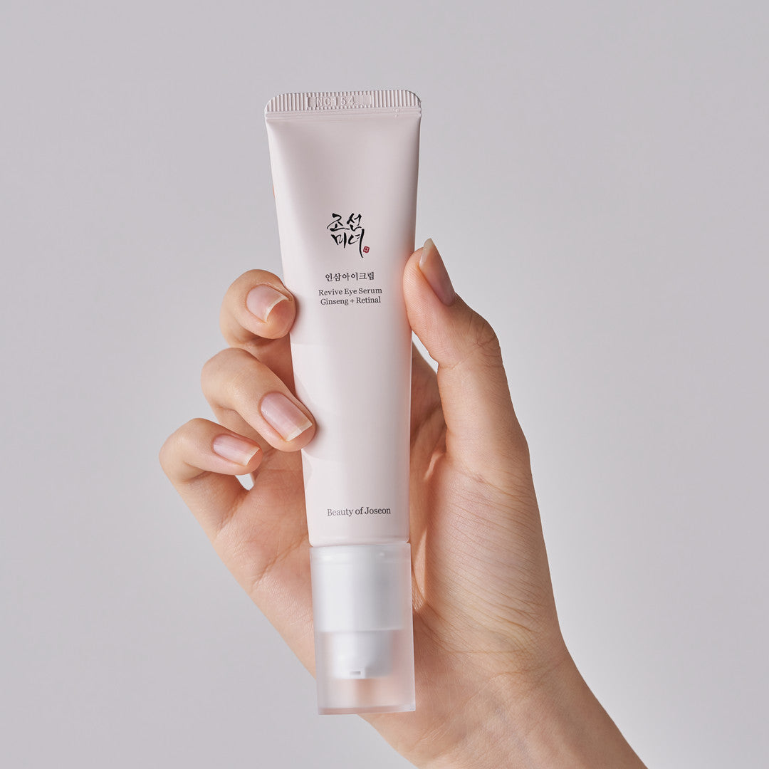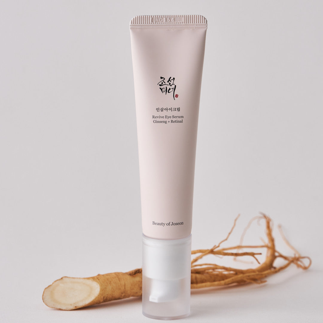 Beauty of Joseon Revive Eye Cream blends 10% Ginseng root extract and 2% Retinal Liposome for targeted wrinkle improvement on the delicate eye skin, backed by studies on Ginseng's saponins.