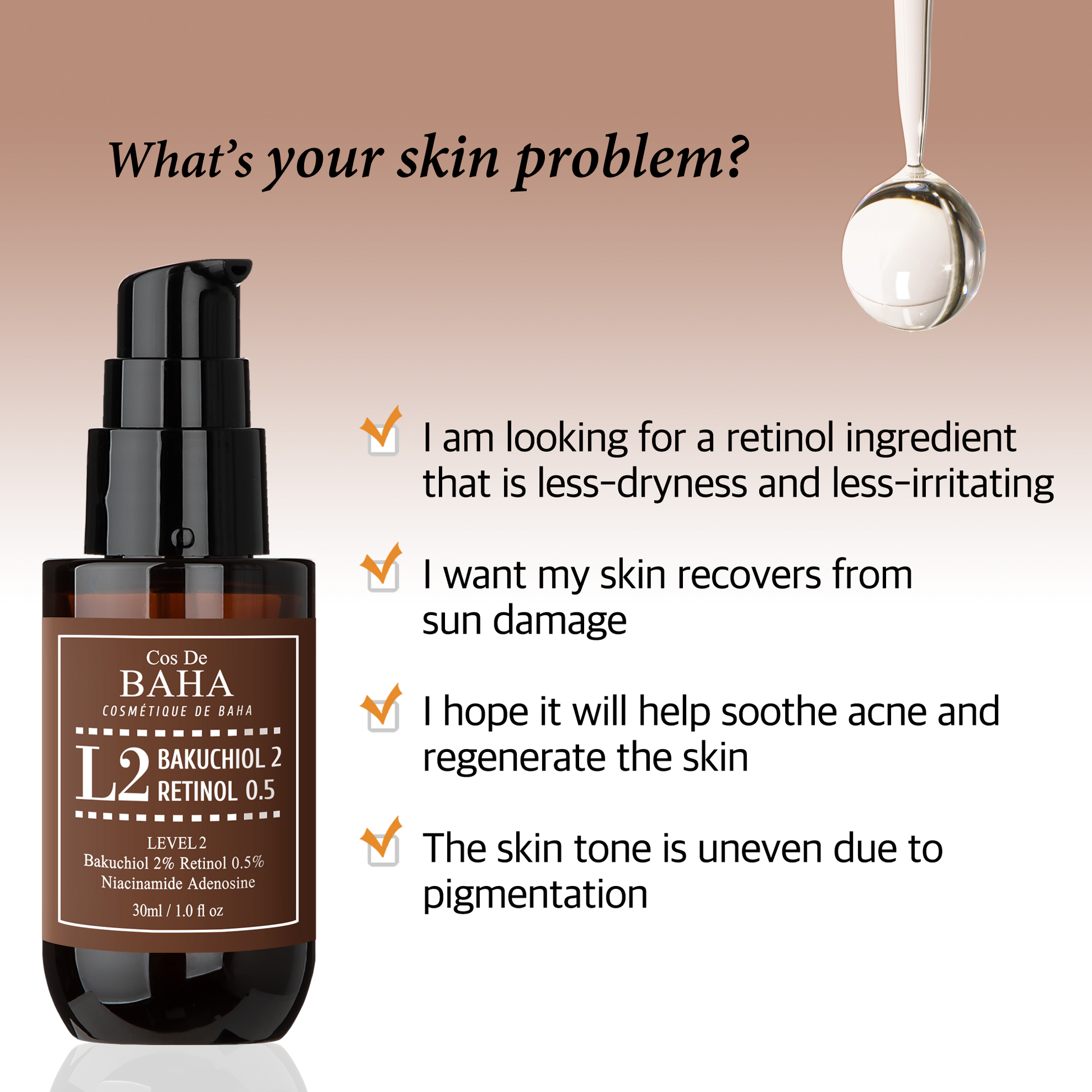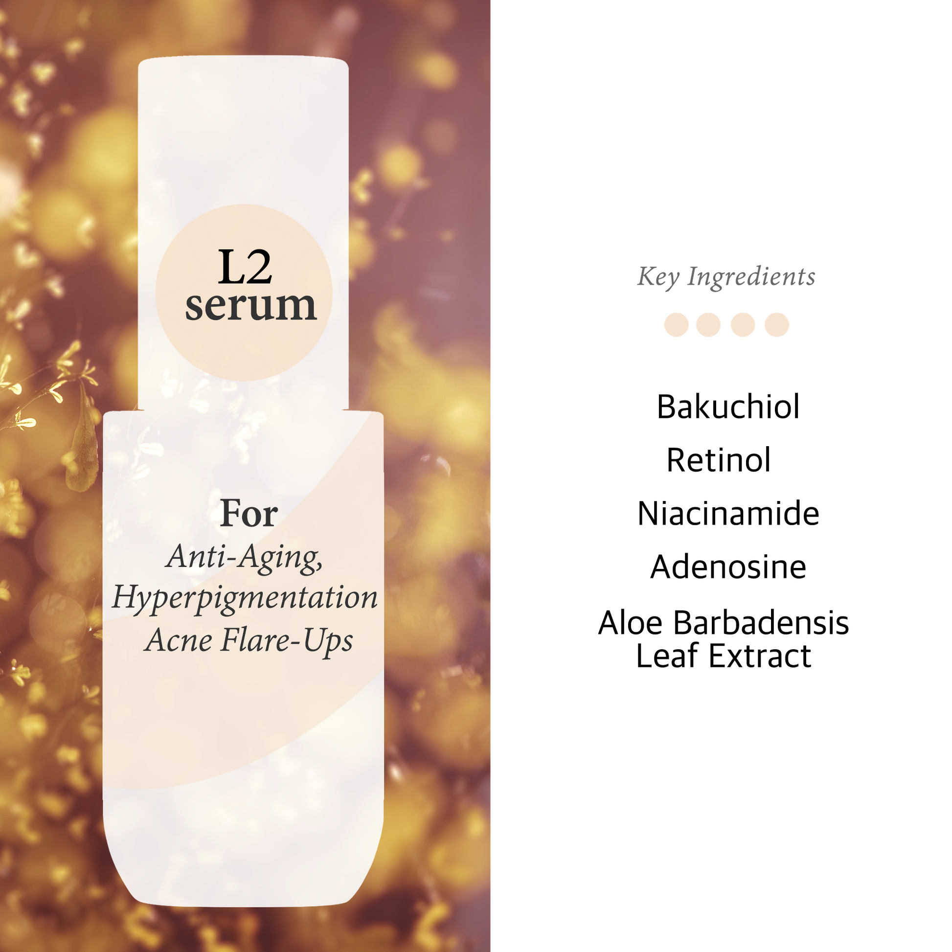 Aloe Barbadensis Leaf Extract, Propanediol, Glycerin, Isononyl Isononanoate, Dimethicone, Niacinamide, Bakuchiol, Cetearyl Alcohol, Retinol, Cetearyl Olivate, Sorbitan Olivate, 1,2-Hexanediol, Panthenol, Tocopheryl Acetate, Allantoin, Sodium Hyaluronate, Water, Butylene Glycol, Artemisia Vulgaris Extract, Melissa Officinalis Leaf Extract, Lavandula Angustifolia (Lavender) Flower Extract, Rosa Damascena Extract, Camellia Sinensis Leaf Extract, Xanthan Gum, Adenosine, Caprylyl Glycol, Tromethamine, Carbomer, Polysorbate 20, Disodium EDTA, Tropolone