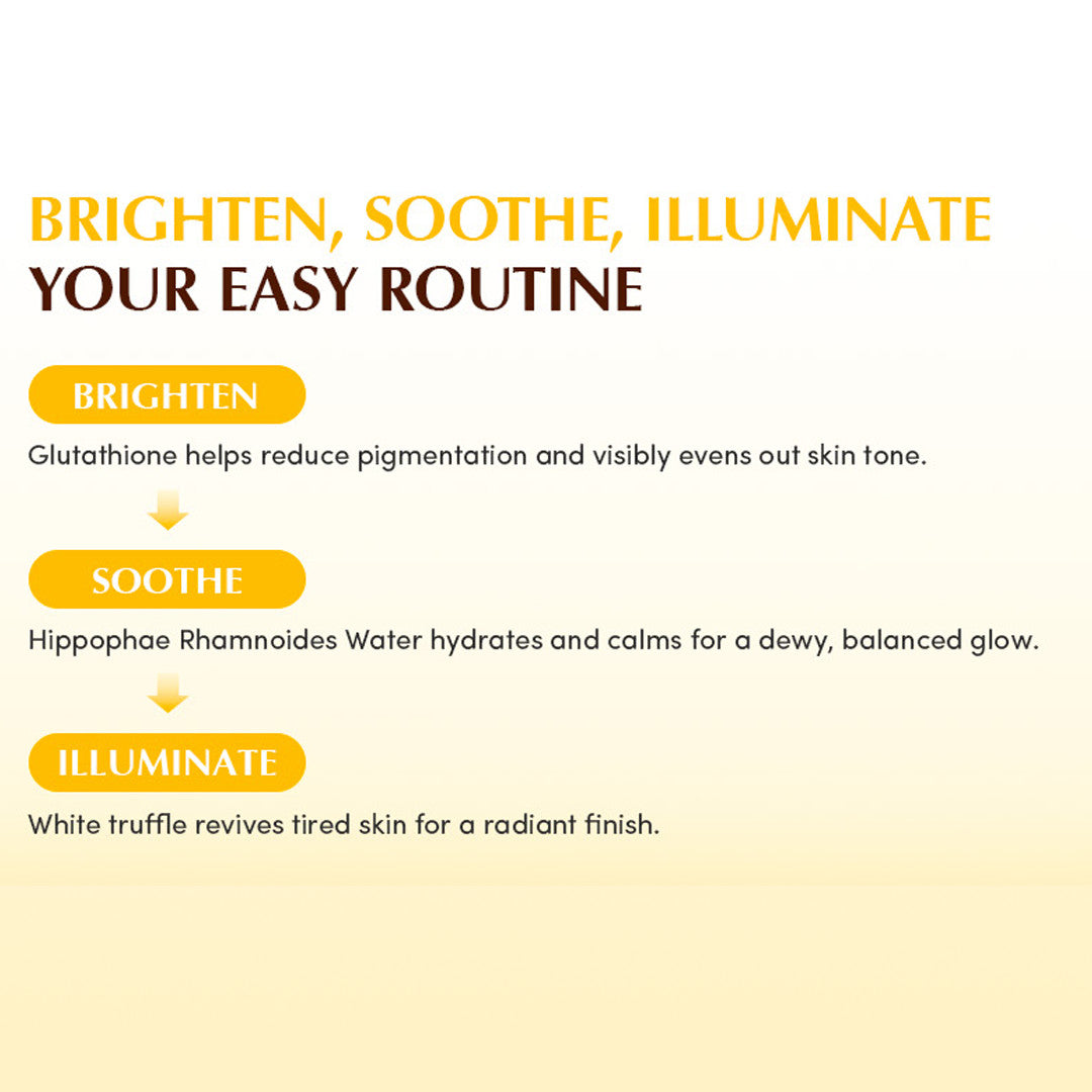 Hippophae Rhamnoides Water,Aqua/Water/Eau,Butylene Glycol,Glycerin,Glycereth-26,Niacinamide,1,2-Hexanediol,Hydroxyacetophenone,Allantoin,Glyceryl Glucoside,Ammonium Acryloyldimethyltaurate/VP Copolymer,Ethylhexylglycerin,Adenosine,Coptis Japonica Root Extract,Sodium Polyacrylate,Xanthan Gum,Hydrolyzed Collagen,Glutathione,Stellaria Media (Chickweed) Extract,Sodium Hyaluronate,Disodium EDTA,Tuber Magnatum Extract,Centella Asiatica Extract