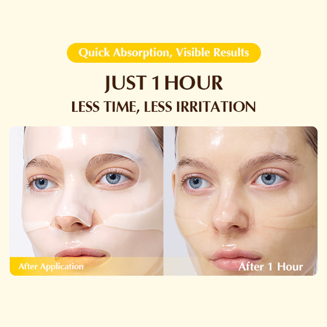 After completing your skincare routine, apply the upper and lower mask parts to your face. Use the additional pieces to cover your eyes and mouth for extra care around fine lines. After an hour, when the mask becomes transparent, remove it and gently pat your skin for better absorption.