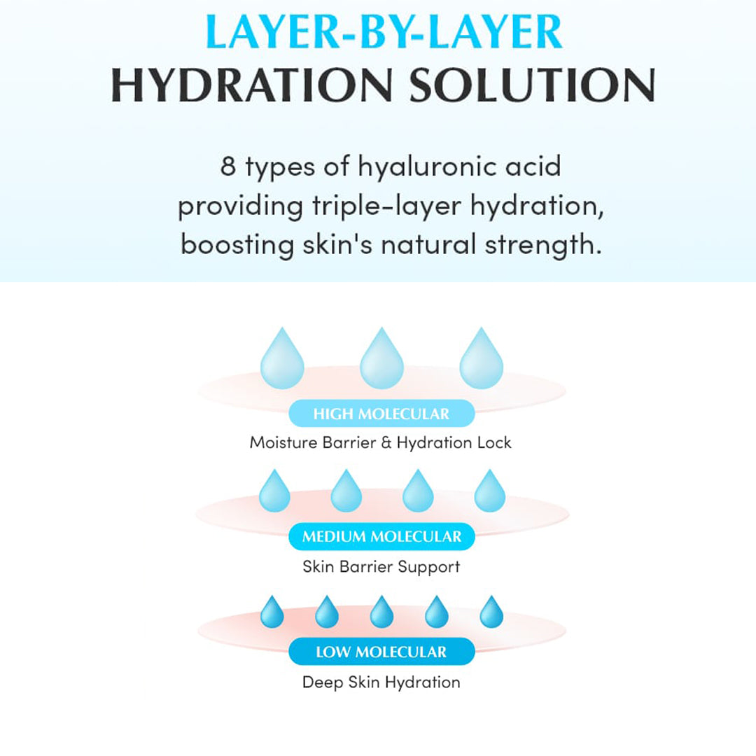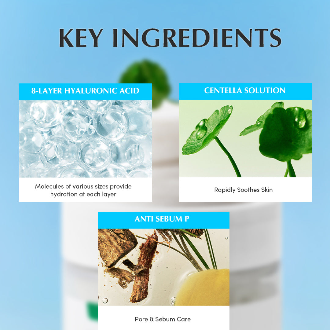 Aqua/Water/Eau, Glycerin, Butylene Glycol, Centella Asiatica Extract, Madecassoside, Madecassic Acid, Asiaticoside, Asiatic Acid, 1,2-Hexanediol, Hydroxyacetophenone, Sodium Hyaluronate, Allantoin, Fructan, Ethylhexylglycerin, Propanediol, Paeonia Suffruticosa Root Extract, Galactoarabinan, Xanthan Gum, Pinus Palustris Leaf Extract, Ulmus Davidiana Root Extract, Oenothera Biennis (Evening Primrose) Flower Extract, Pueraria Lobata Root Extract, Styrene/VP Copolymer, Rubus Fruticosus (Blackberry) Fruit Extract, Vaccinium Macrocarpon (Cranberry) Fruit Extract, Vaccinium Angustifolium (Blueberry) Fruit Extract, Rubus Idaeus (Raspberry) Fruit Extract, Sambucus Nigra Fruit Extract, Hydroxypropyltrimonium Hyaluronate, Hydrolyzed Hyaluronic Acid, Sodium Acetylated Hyaluronate, Hyaluronic Acid, Sodium Hyaluronate Crosspolymer, Hydrolyzed Sodium Hyaluronate, Potassium Hyaluronate
