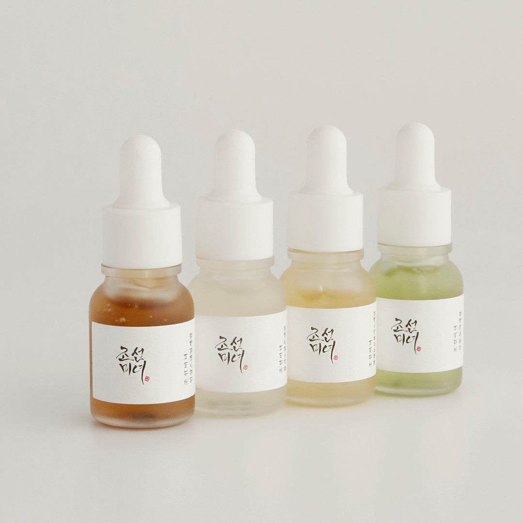 Ginseng + Snail Mucin (10ml) : A light serum with mucin-like texture which reduces wrinkles and pigmentation.